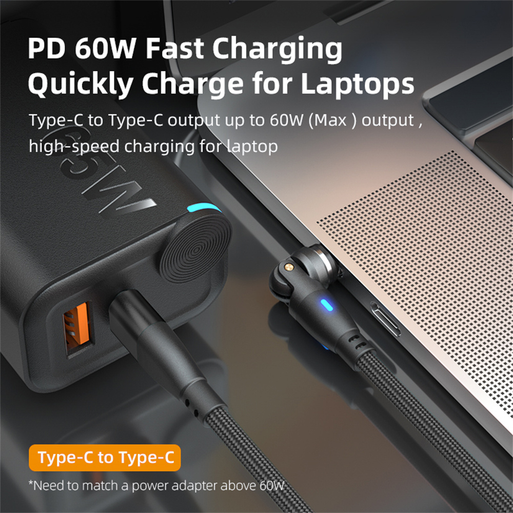 Cablu USB-C Magnetic 60W PD Fast Charging, Rotire 540°